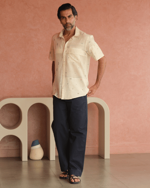 Expertly crafted from handwoven Khadi and premium cotton, this piece showcases the exquisite Jamdani weaving technique an age-old handloom method renowned for its delicate geometric patterns and artisanal precision. Soft, breathable, and luxuriously textured, it balances heritage craftsmanship with contemporary style for both casual and semi-formal settings.
