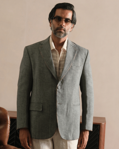 Crafted from handwoven cotton and khadi, this blazer combines softness, breathability, and refined texture. Expertly tailored for a polished, structured silhouette, it ensures both comfort and elegance.