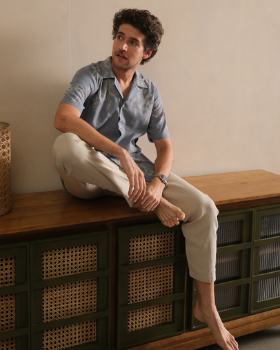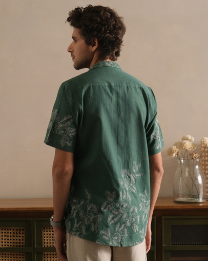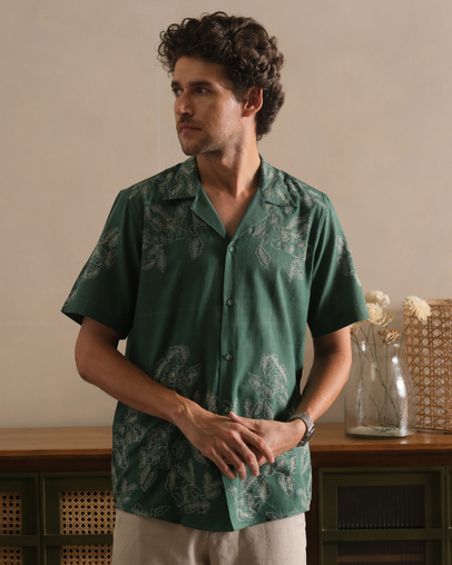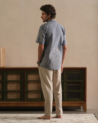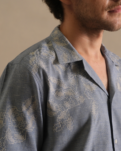 Crafted from premium cotton and adorned with delicate contemporary embroidery, this shirt exemplifies refined sophistication. The intricate motifs harmonize modern design aesthetics with artisanal precision, offering a lightweight, breathable, and effortlessly elegant choice for both casual and semi-formal occasions.