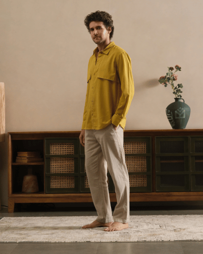 Handwoven from the finest pure cotton, this shirt captures the essence of understated luxury and artisanal precision. The natural breathability and soft texture of the fabric ensure comfort throughout the day. At the same time, its refined tailoring creates a polished silhouette that transitions effortlessly from casual to semi-formal settings.